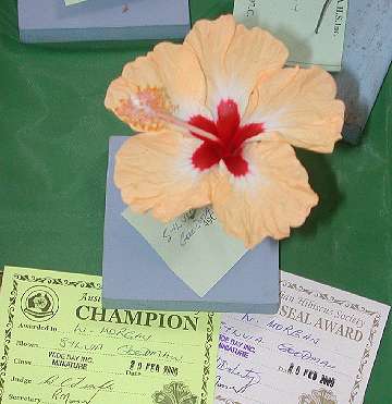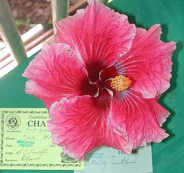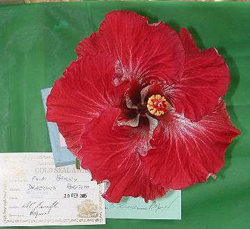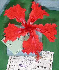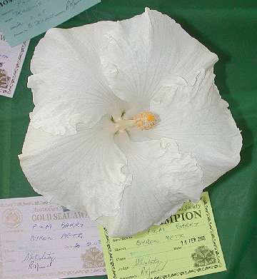 The Four Champions - no awards in the other sections Wally Morgan's Champion Miniature, Sylvia Goodman Phil and Mavis Barry's Champion Seedling, Pink Dragon Phil and Mavis Barry's Champion Single, Byron Metts Phil and Mavis Barry's Most Spectacular, Dragon's Breath