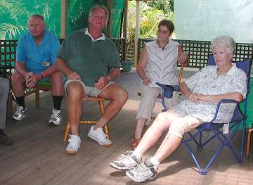 | Yours truly, Wally Morgan, and Taylor pose after the meeting. | Phil and Mavis Barry surround Brenda and Col Dennis, new members who are already enthused. Somehow, just a foot of Dennis Doherty made the left-hand edge of the pic! |
