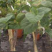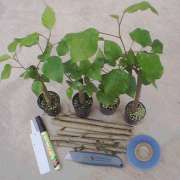 Le GREFFAGE est simplement un moyen de connecter le flux de sève du porte-greffe à celui du greffon, il ne faut rien de plus . J’ai vu souvent toutes sortes de résultats amusants quand seulement une fraction des couches à sève du cambium faisaient connexion, mais la plante continuait à se développer. Bien sûr, « l’expert » mettra l’accent sur la nécessité d’avoir un porte-greffe et un scion qui coïncident parfaitement. Je me souviens de mes premières greffes quand j’en pronostiquais certaines « improbables » et d’autres « sûres », et je puis vous assurer que le résultat était souvent complètement à l’opposé. Il y a beaucoup d’autres manières de greffer, même simplement en fendant l’extrémité. La connexion du cambium est tout ce qui compte. Certaines sont plus esthétiques en apparence que d’autres, mais c’est juste un choix personnel ; peu importe quel type (de greffe) vous utilisez. Une coiffe maintenant l’humidité est importante si vous ne disposez pas d’une pièce humide de type igloo. Cette coiffe doit juste rester en place environs deux semaines et le « grafting tape » peut être enlevé après 4 à 6 semaines selon que vous chauffez ou pas. Tous les yeux subsistant sur le porte-greffe doivent également être enlevés. Voyez aussi comment sauver une greffe ratée, en utilisant une autre méthode, la greffe fouet et langue.