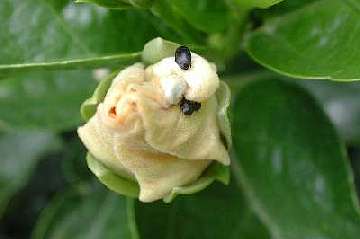 | The voracious beetles showing how they burrow into a Shirley Howie in the race to the pollen | The effect of spraying seen a while later when the bodies have rolled out of the bloom | ||||