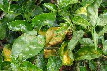 The typical yellow blotching on the top of the leaf and